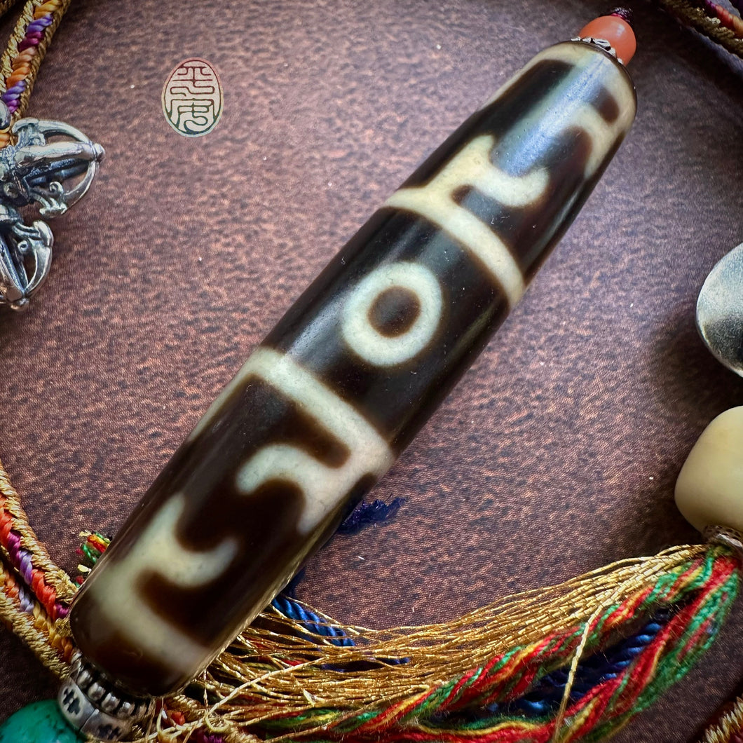 Fine Vintage Lotus Master Dzi bead on Waven Cord Necklace