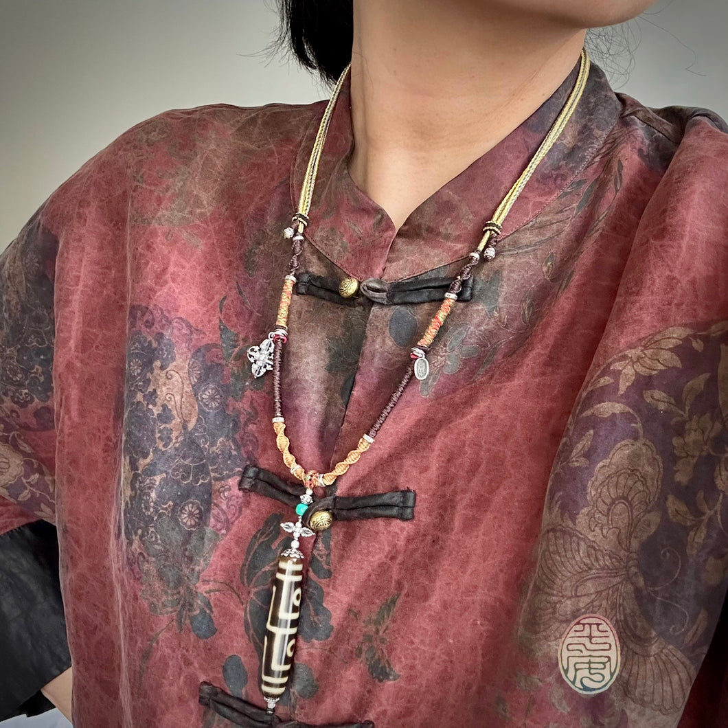 This necklace features an authentic Tibetan Four-Eye dZi bead amulet filled with meaningful energy and symbolism. It makes a thoughtful gift for anyone seeking protection, prosperity, and positive energy.