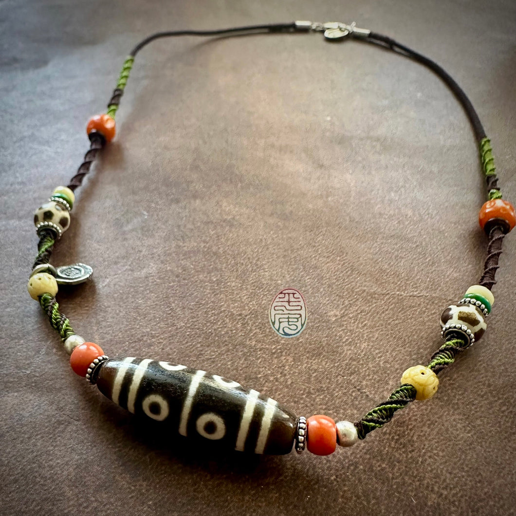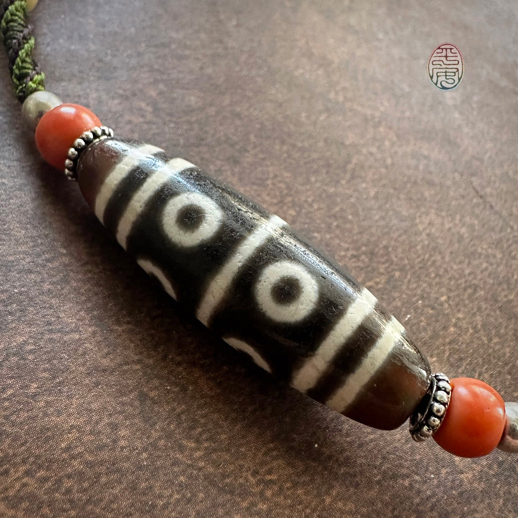 Eight-Eye Tibetan dZi Bead with Handmade Cord Necklace